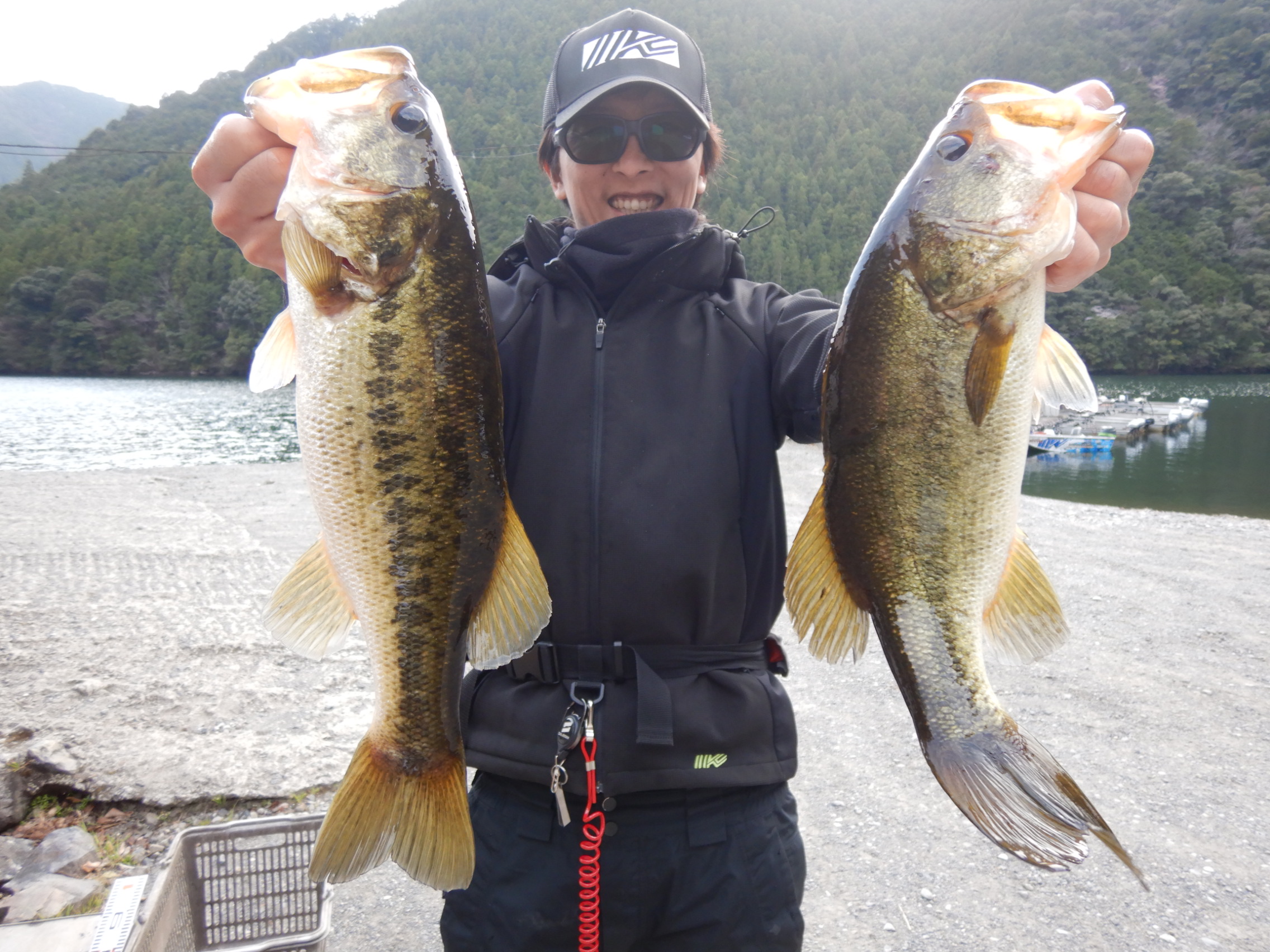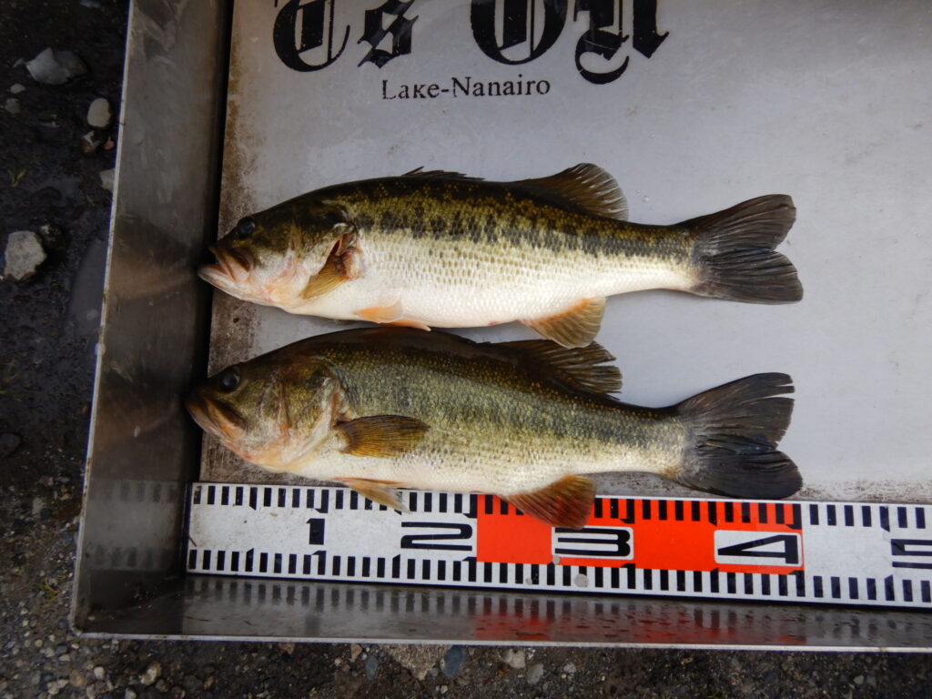 森村さん、41.0㎝(890g)、41.0㎝(840g)。2本とも、レインボーチューブ、西の川。